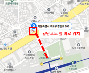 오류동역 3번출구 도보2분거리, 정면 건물로 경인로 대로변에 위치한 최적의 의료입지 건물 입니다.